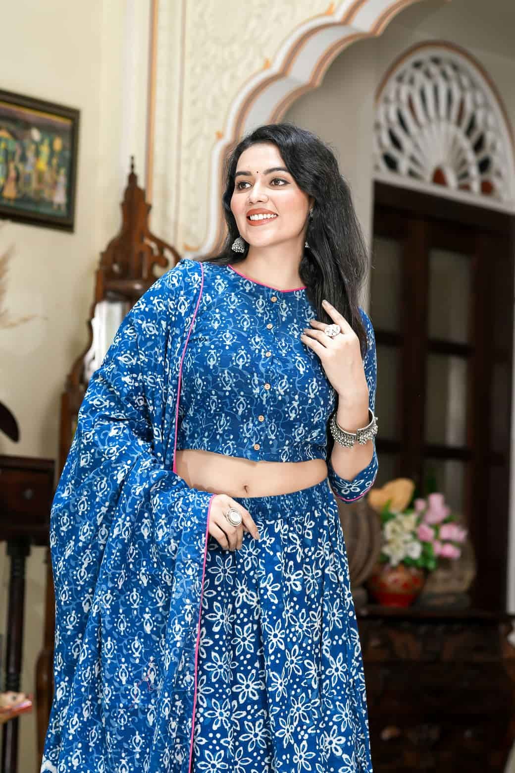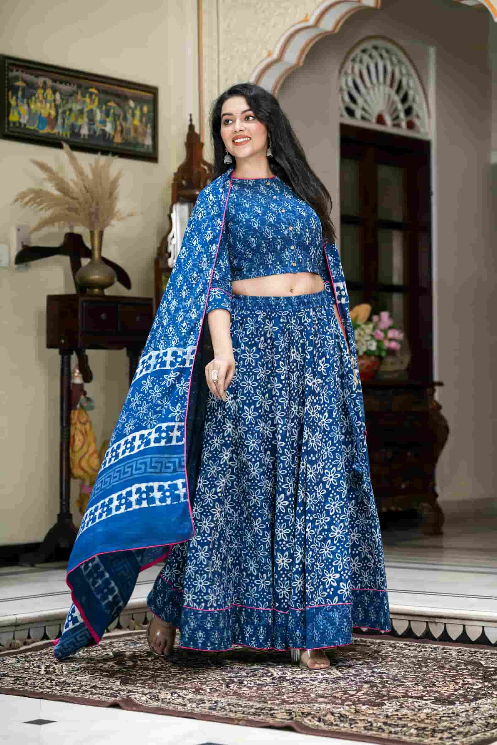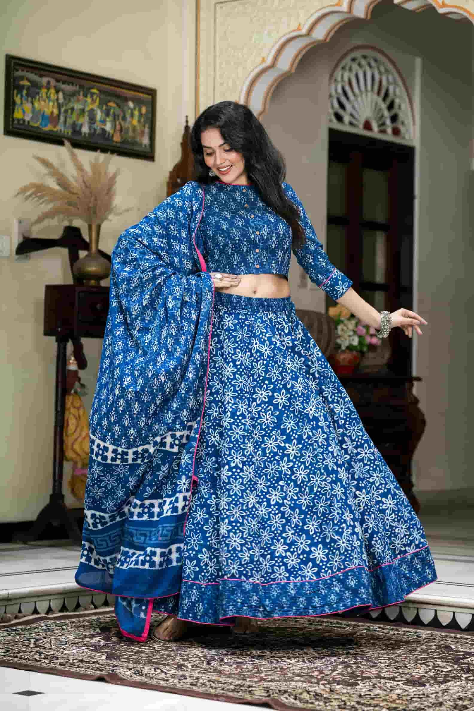Indigo Daabu Print Cotton Lehanga Choli