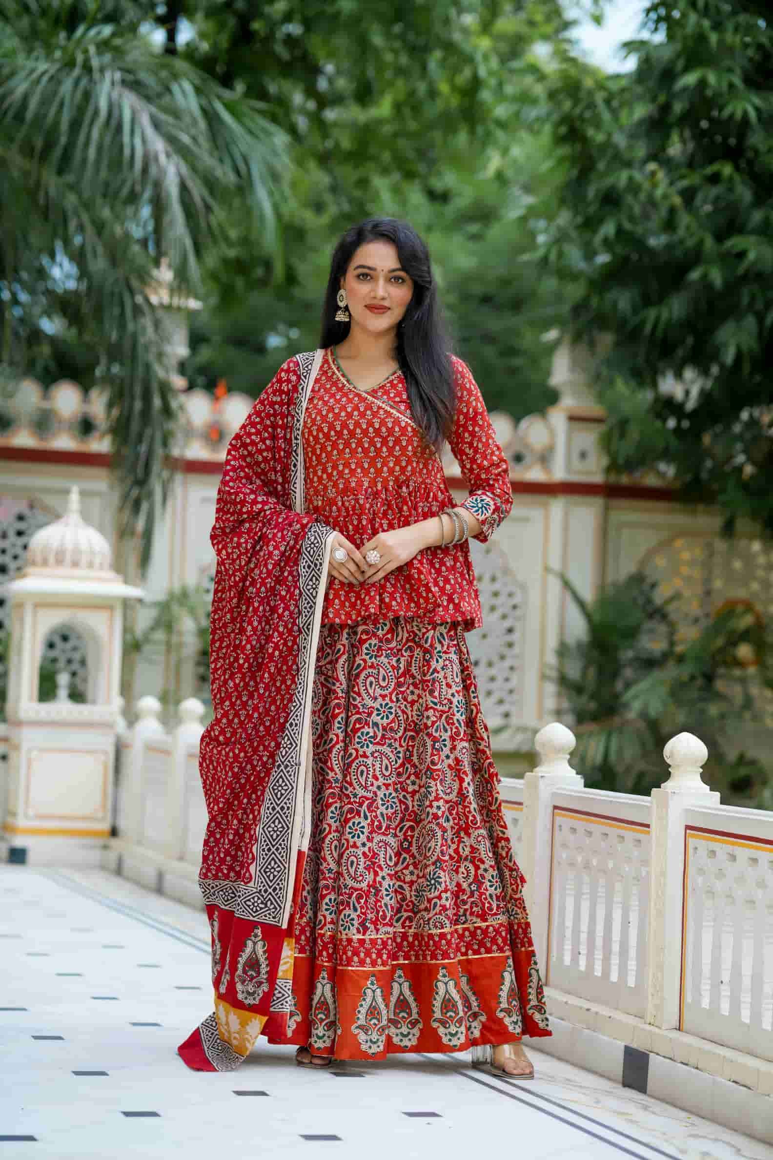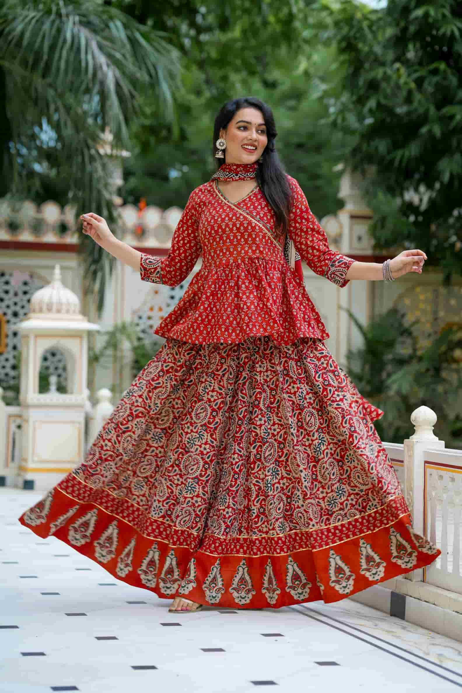 Red Bagru Print Cotton Lehanga Angrakha Choli